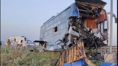 तेज रफ्तार का कहर, बस-ट्रक भिड़े, 30 लोग घायल