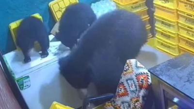 राजस्थान: मादा भालू अपने बच्चों संग दुकान में घुसी, फ्रिज से निकाला दही