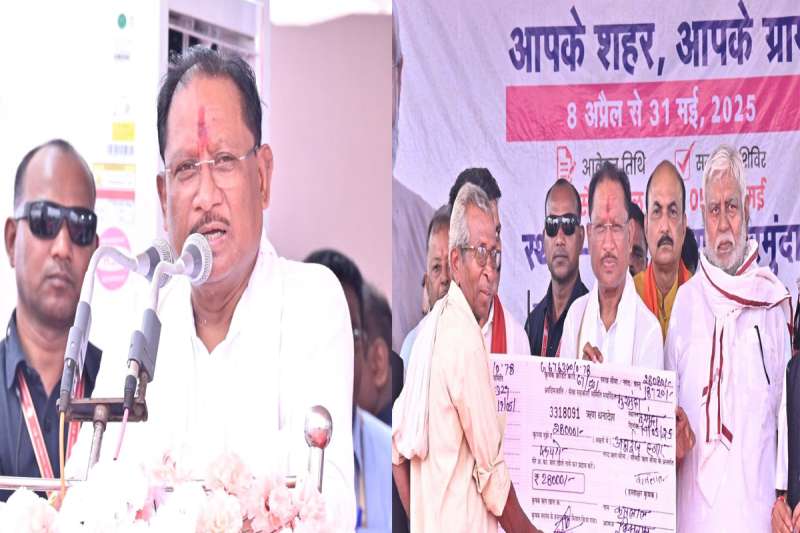 मुख्यमंत्री श्री साय ने समाधान शिविर में प्रधानमंत्री आवास योजना के हितग्राहियों को गृह प्रवेश की चाबियां, मनरेगा श्रमिकों को जॉब कार्ड, पात्र हितग्राहियों को सामाजिक पेंशन, किसानों को किसान क्रेडिट कार्ड, चेक और एटीएम कार्ड वितरित किए। मुख्यमंत्री श्री साय ने अंत में कहा कि सरकार का कार्य सिर्फ शासन चलाना नहीं, बल्कि जनता की सेवा करना है। जब शासन जनता के द्वार तक आता है, तभी असली सुशासन स्थापित होता है। सुशासन शिविर को उप मुख्यमंत्री श्री विजय शर्मा, विधायक श्री डोमनलाल कोर्सेवाड़ा ने भी संबोधित किया। कार्यक्रम में विधायक साजा श्री ईश्वर लाल साहू, पूर्व विधायक श्री प्रेमप्रकाश पांडेय, मुख्य सचिव श्री अमिताभ जैन, मुख्यमंत्री के सचिव श्री पी. दयानंद सहित अन्य जनप्रतिनिधि एवं मुरमुंदा सहित 15 पंचायतों के ग्रामीण जन बड़ी संख्या में उपस्थित थे।