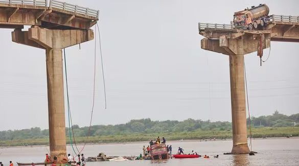 वडोदरा जिले के पादरा और आणंद के गंभीरा इलाकों को जोड़ने वाला एक पुल आज सुबह ढह गया. इस पुल का इस्तेमाल मध्य गुजरात से सौराष्ट्र जाने वाले वाहनों के लिए मुख्य मार्ग के रूप में किया जाता था. पुल के ढहने का मुख्य कारण रखरखाव में कमी बताया जा रहा है. मृतकों की पहचान नहीं हो पायी है. इस हादसे से इलाके में लोगों में प्रशासन के खिलाफ रोष है.
