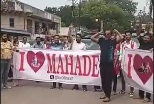 हिंदूवादी संगठनों का प्रदर्शन, लगे आई लव महादेव और आई लव यूपी पुलिस के नारे