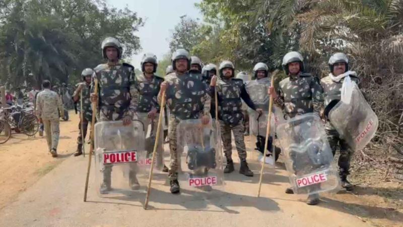 Kondagaon: कोकोड़ी मक्का प्रोसेसिंग प्लांट के विरोध में 12 घंटे से प्रदर्शन जारी, भारी संख्या में पुलिस बल तैनात