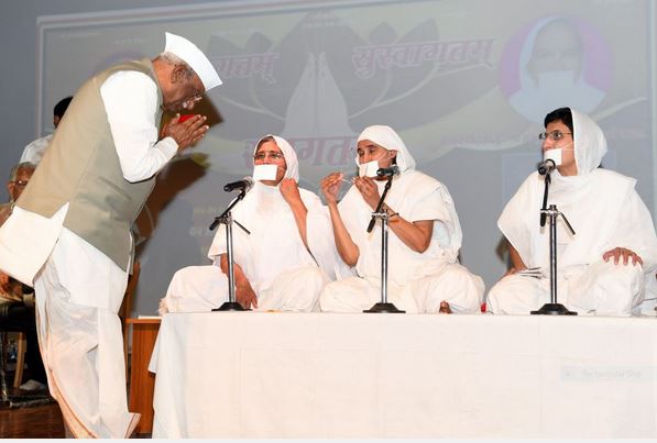 जयपुर । राज्यपाल हरिभाऊ बागडे साध्वी डॉ. कुमुद लता जी महाराज के सानिध्य में आयोजित शांति एवं सद्भाव अनुष्ठान में सम्मिलित हुए। उन्होंने महासती डॉ. कुमुद लता को प्रणाम निवेदित करते हुए उनका आशीर्वाद लिया। बागडे ने इस दौरान कहा कि जैन धर्म नहीं संस्कृति है।