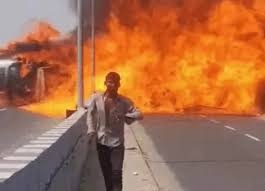 तेल टैंकर पलटते ही लगी आग, लपटों में घिरा 200 मीटर इलाका