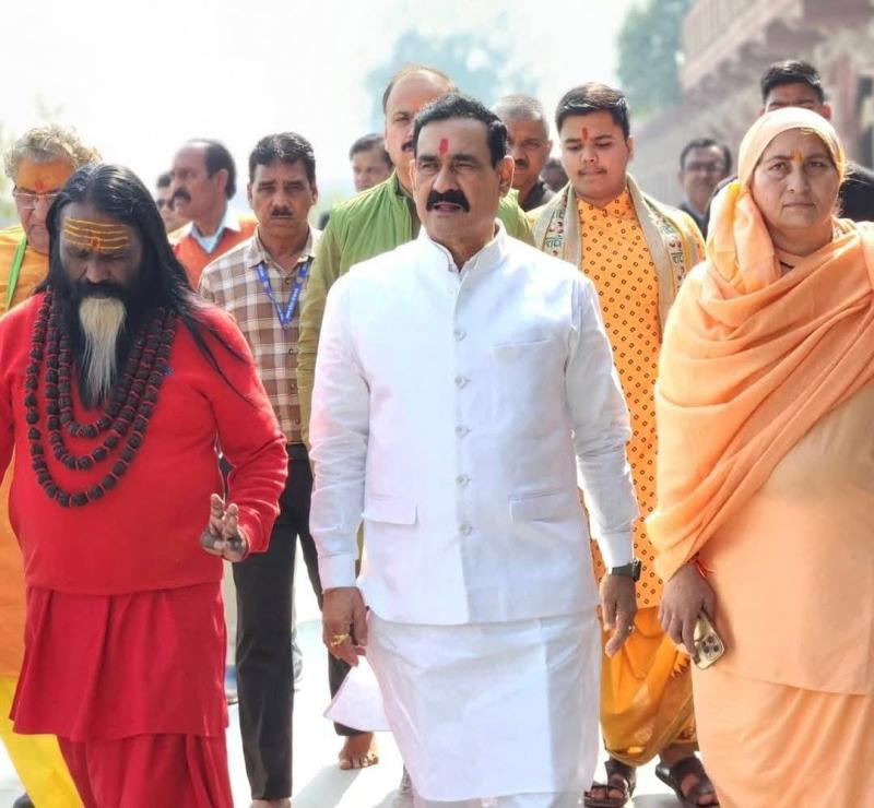 ग्वालियर। बलात्कार के आरोपी बहुचर्चित दाती बाबा का मप्र के पूर्व गृहमंत्री डॉ नरोत्तम मिश्रा ने बाजे-गाजे के साथ स्वागत किया. दाती महाराज मिश्रा के गृहनगर डबरा में बनवाए गए नवगृह मंदिर के प्राण प्रतिष्ठा समारोह में शामिल होने पहुंचे है। डॉ मिश्रा ने अपने इंस्ट्राग्राम अकाउंट पर बलात्कार के आरोपी बाबा के साथ अपनी तस्वीरें सगर्व पोस्ट की हैं। आपको बता दें कि दाती महाराज बलात्कार मामले में दोषमुक्त नहीं हुए हैं।