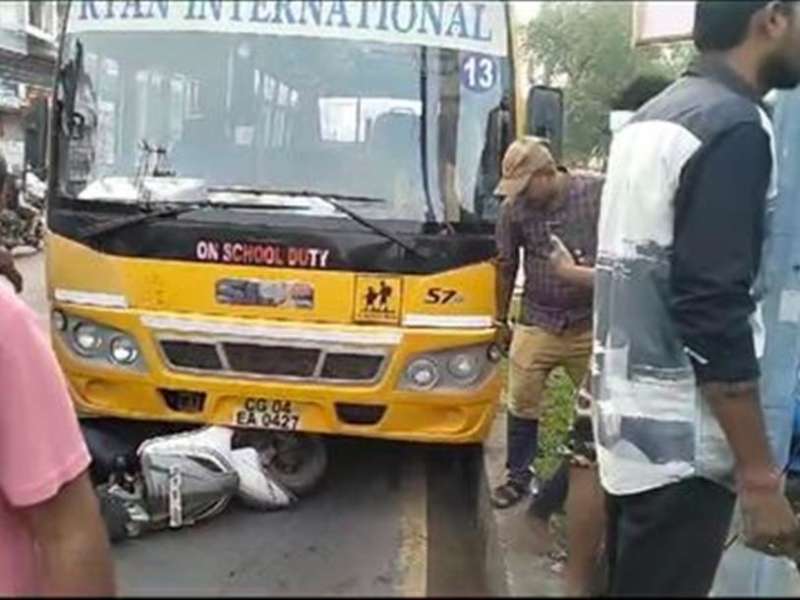स्कूल बस और स्कूटी की टक्कर, महिला 50 मीटर तक घसीटी गई