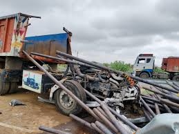 पुलिया से टकराया ट्रेलर, पाइप गिरने से दो घायल गंभीर