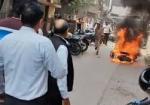 चलती बाइक में अचानक भड़की आग, जिला न्यायालय क्षेत्र में अफरा-तफरी -