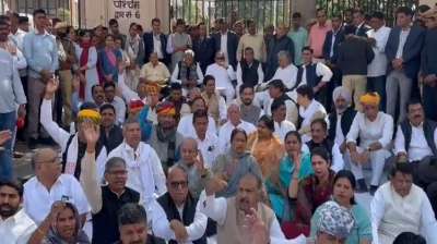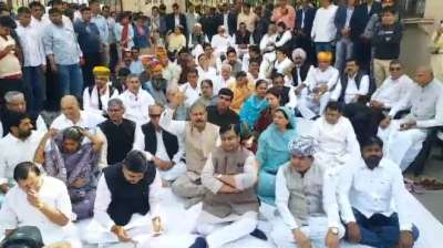 राजस्थान विधानसभा के बाहर सभी विधायक धरने पर बैठे