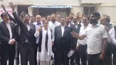 एसपी कार्यालय पर वकीलों का प्रदर्शन, तीन दिन नहीं करेंगे कार्य