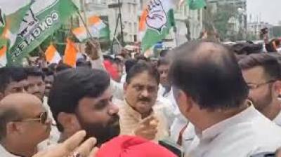 हाईवे पर कांग्रेस नेताओं का हंगामा