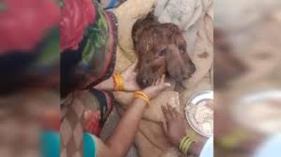 यूपी के गांव में अनोखा मामला, दो मुंह-पांच पैर वाली बछिया को देखने लगी लोगों की भीड़