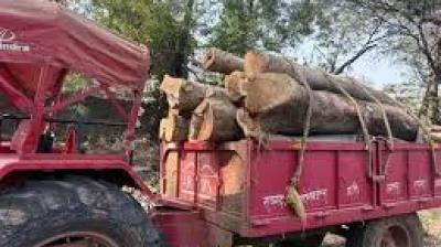 छत्तीसगढ़ राज्य वन विकास निगम की कार्रवाई, लकड़ी से भरा ट्रैक्टर पकड़ा