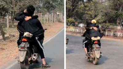 चलती बाइक पर प्रेमी जोड़ा रोमांस करना पड़ गया भारी एसपी ने लगाई फटकार...