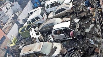 कटी हुई कार और भारी मात्रा में स्क्रैप जब्त